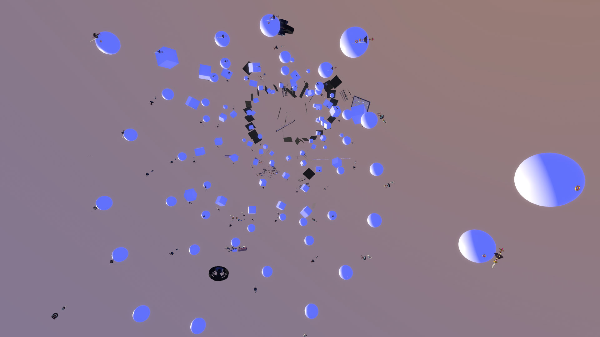 At the beginning of the experiment, the first machine forms words of two or more whispered syllables. As the spectator slowly rises into the air, a network of spheres arranged in a tree structure is activated, receiving at regular intervals an impulse propagating from the top to the bottom. At each intersection, it can take one path or the other, to the left or to the right, according to a Bernoulli process (a probability space). Initially, the impulse only goes in one direction, inexorably forming the same word. But little by little, the probability of bifurcation increases until it reaches parity, thus forming a multitude of different words, the meaning of which remains to be determined. Each headset plays its own dice, so that no two experiences are ever identical, and the results of the other instances in progress in the room can be heard in the background.